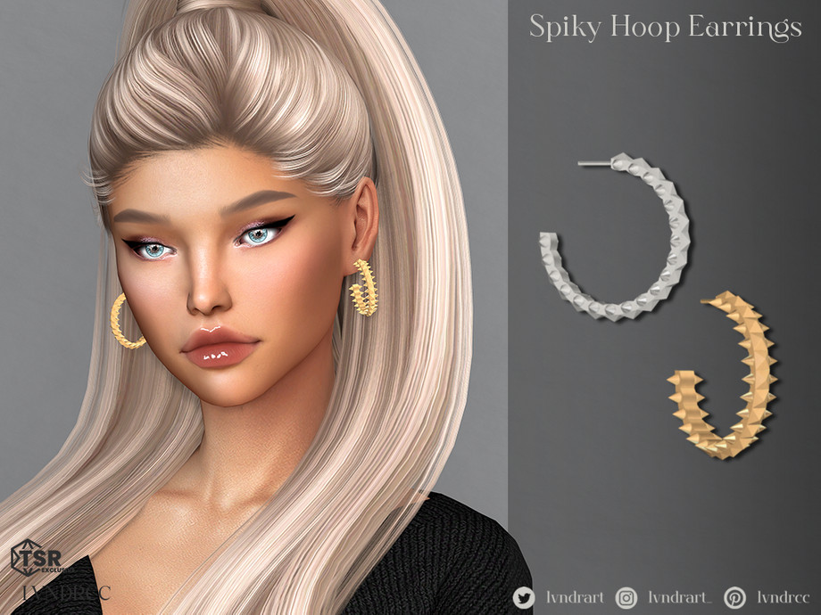 Medium hoops inlaid with metal spikes and pyramid studs. In gold and silver, those earrings will be perfect for grungy, alternative looks.