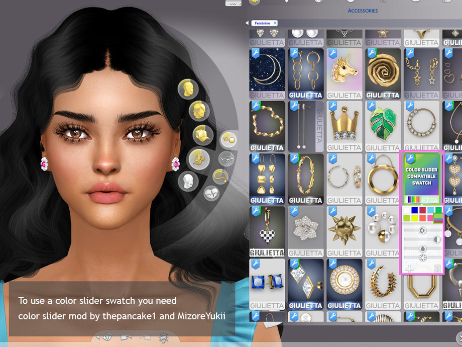 Timeless Gemstone Stud Earrings come with 10 swatches, and 11th swatch is compatible with UI color slider mod by thepancake1 and MizoreYukii.