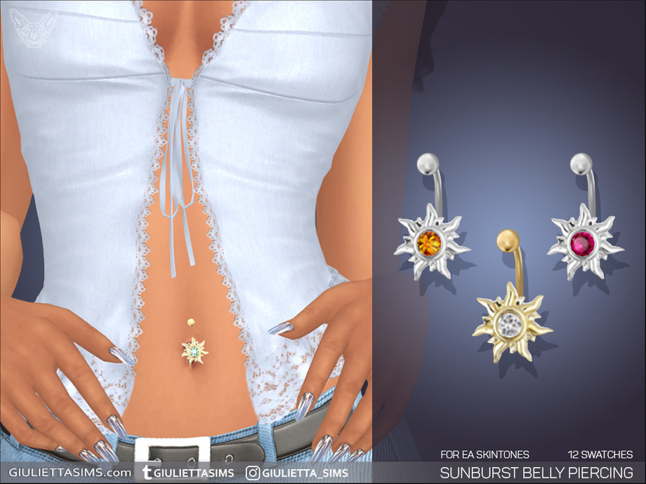 Look for this navel accessory in the left brow ring category. This belly piercing is compatible with EA skintones where the navel is positioned lower on the skin.