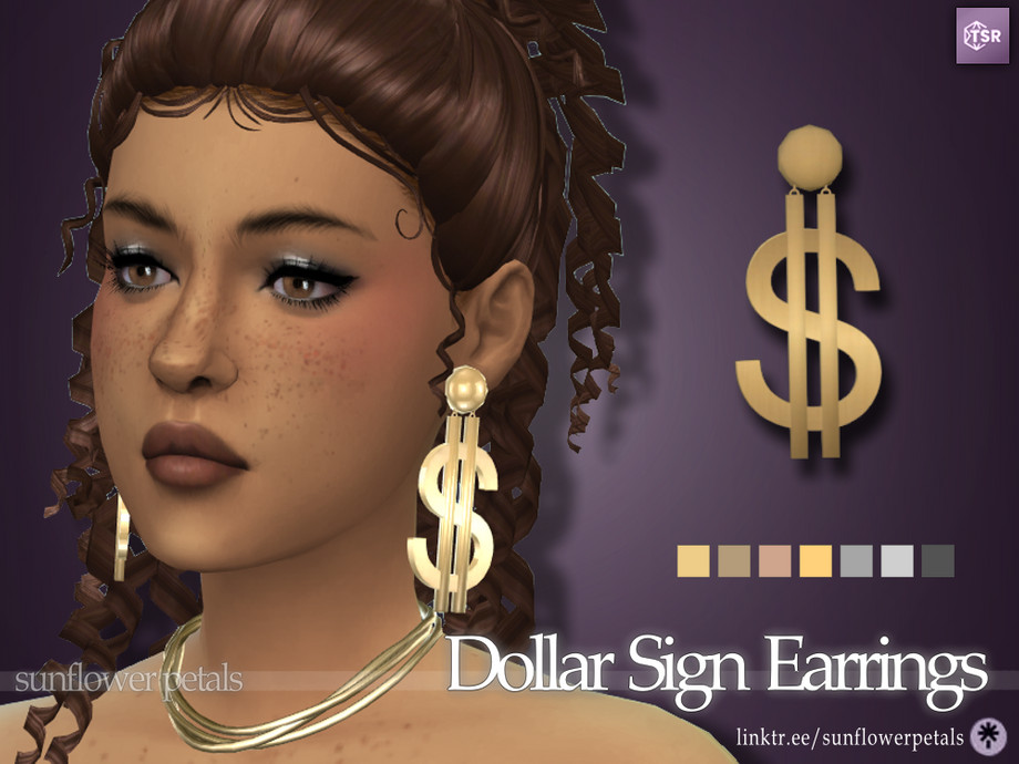 A pair of large, dangle earrings in the shape of dollar signs. Comes in 7 metal colors.