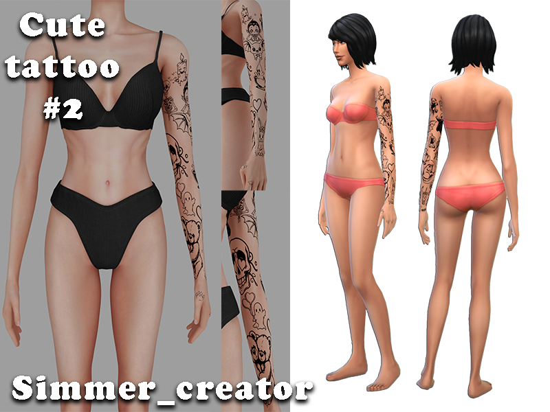 A single, charming tattoo design for female Sims, placed on the left sleeve. Suitable for teens to elders and seamlessly compatible with Alpha skin for a soft, realistic look.