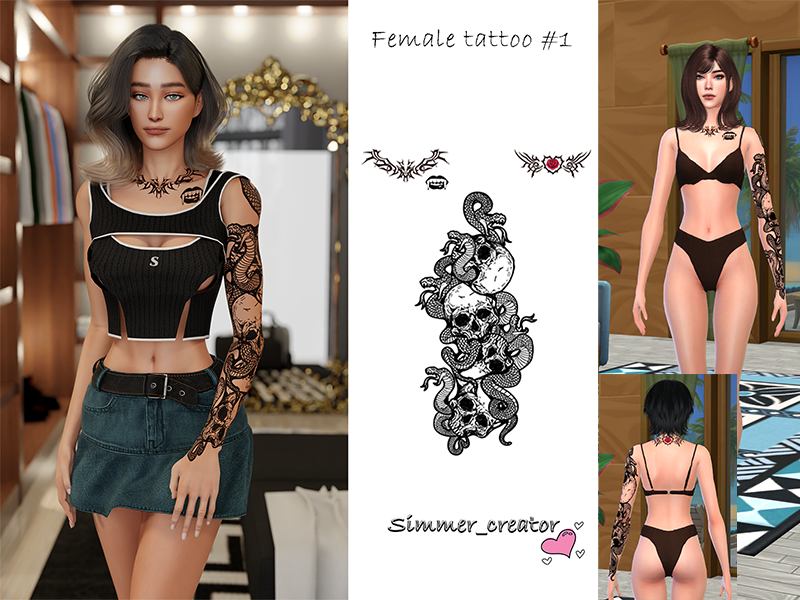 5 varriations of tattoos Random tattoos for female sim Teen - Elder Can be used on Alpha skin ---------------------------------------------------- you can edit only for personal use Don't convert my to other games Don't re-sell or re-upload