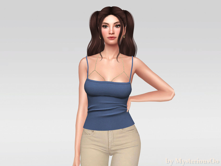 Ribbed fitted top with integrated chain neckline detail