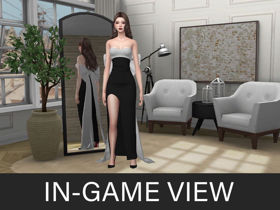 Long, elegant dress with a large bow