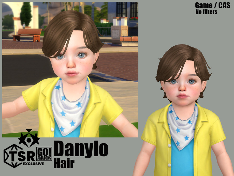 Unisex medium hairstyle with bangs for toddlers in maxis style.