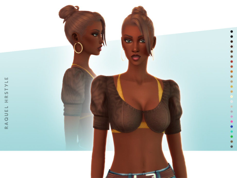 This sleek high updo hairstyle comes in the 24 EA hair colors and is available for Teen-Elder feminine framed sims.