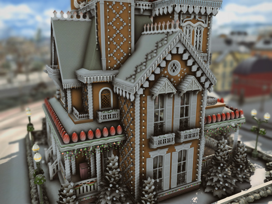 This magical gingerbread house looks as if it came straight out of a Christmas tale, with its sweet walls and sugar-molded windows.