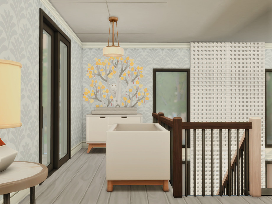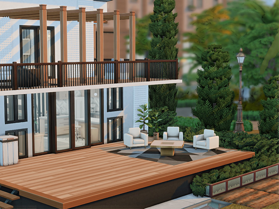A modern two-bedroom family home designed for comfortable everyday living. The house features a main bedroom for adults, a second bedroom, one bathroom, and a functional basement space. An open, light-filled layout connects indoor and outdoor areas, while dedicated space for a cat makes it perfect for pet-loving Sims. Clean lines, warm wood accents, and multiple terraces create a relaxed, contemporary atmosphere ideal for small families and storytelling gameplay.