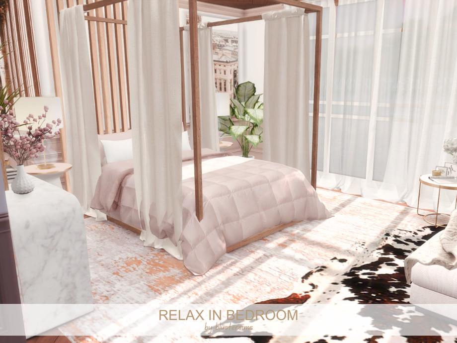 Relax In Bedroom is a serene, sunlit space blending soft blush tones, natural wood, and lush greenery to create a calm, airy retreat designed for effortless relaxation.