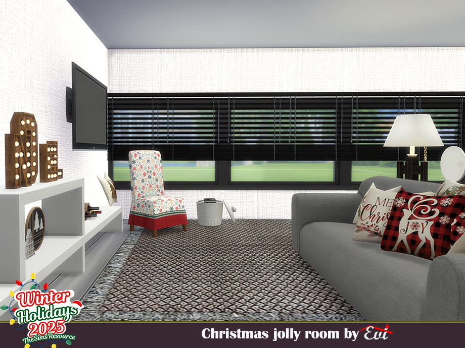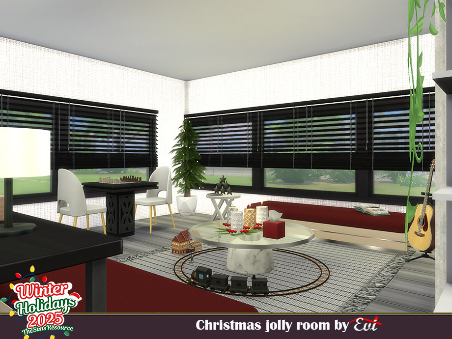 A modern livingroom furnished in contemporary style and decorated with festive items