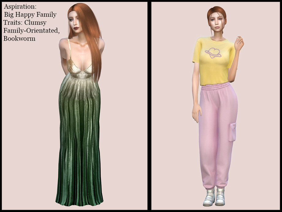 Please check the Creator Notes tab to see my DLCs and the Required tab for the CC the sim uses, which is !needed! to make the sim in your game match my previews.