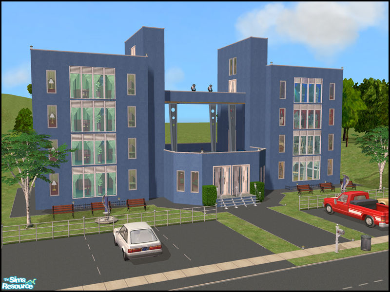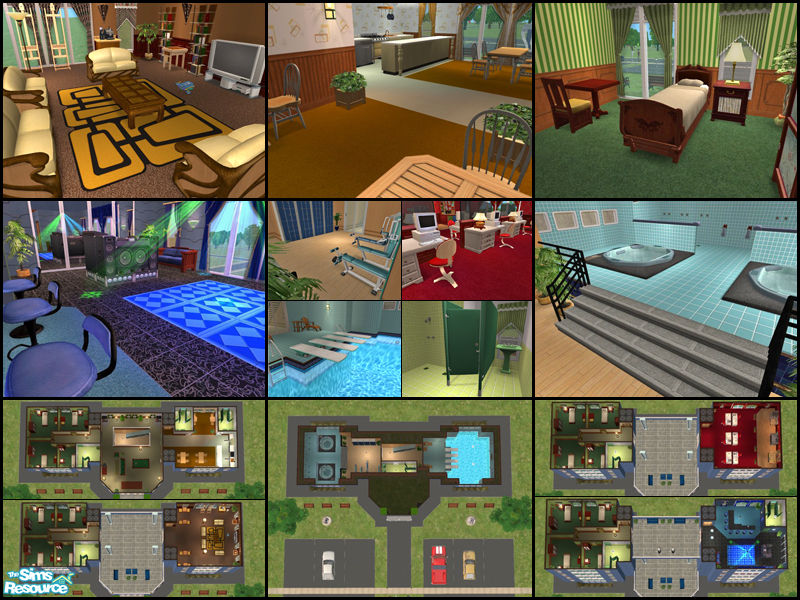 Luxurious dorms for your active student sims! Features basement pool, gym and spa. Large communal common room, IT & Craft lab. There's even a club/bar on the upper floor! Parking for 6 vehicles - 3 cars included! Maxis content only and no hacks.