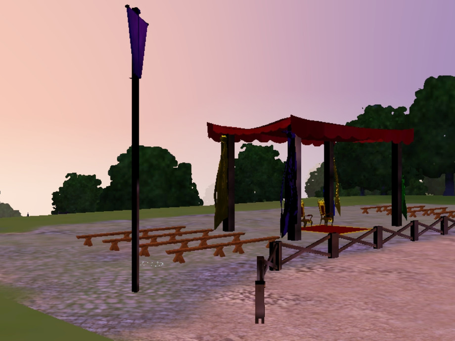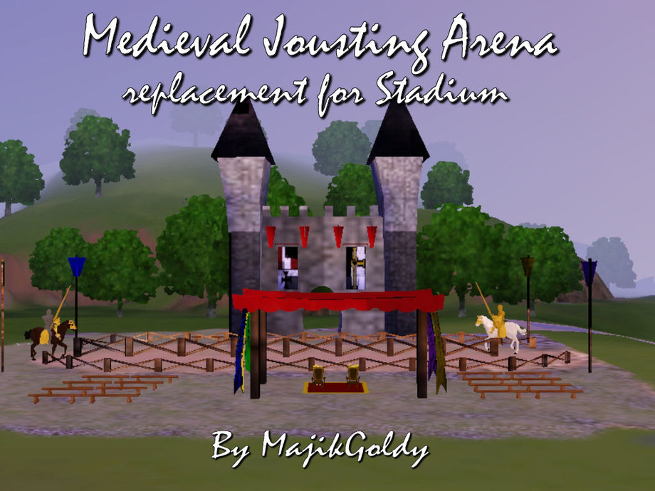 This Medieval Jousting Arena is a Replacement for the Sims Stadium You add your own Chairs and benches and Decorate it the way you want it. This Building can be used exactly like the Sims building. Plus....Objects can be Placed inside the building. so if you wish to place a chair inside you can, and your Sim will use it. This is a community Object.