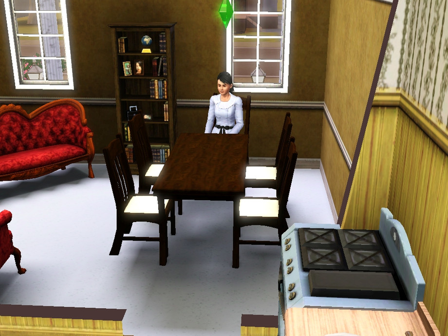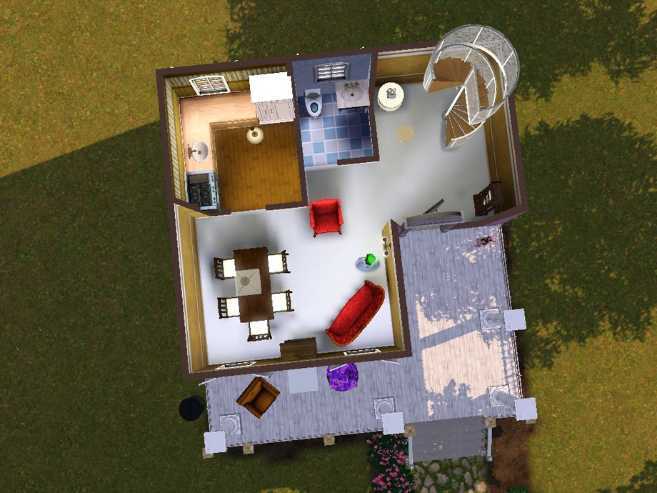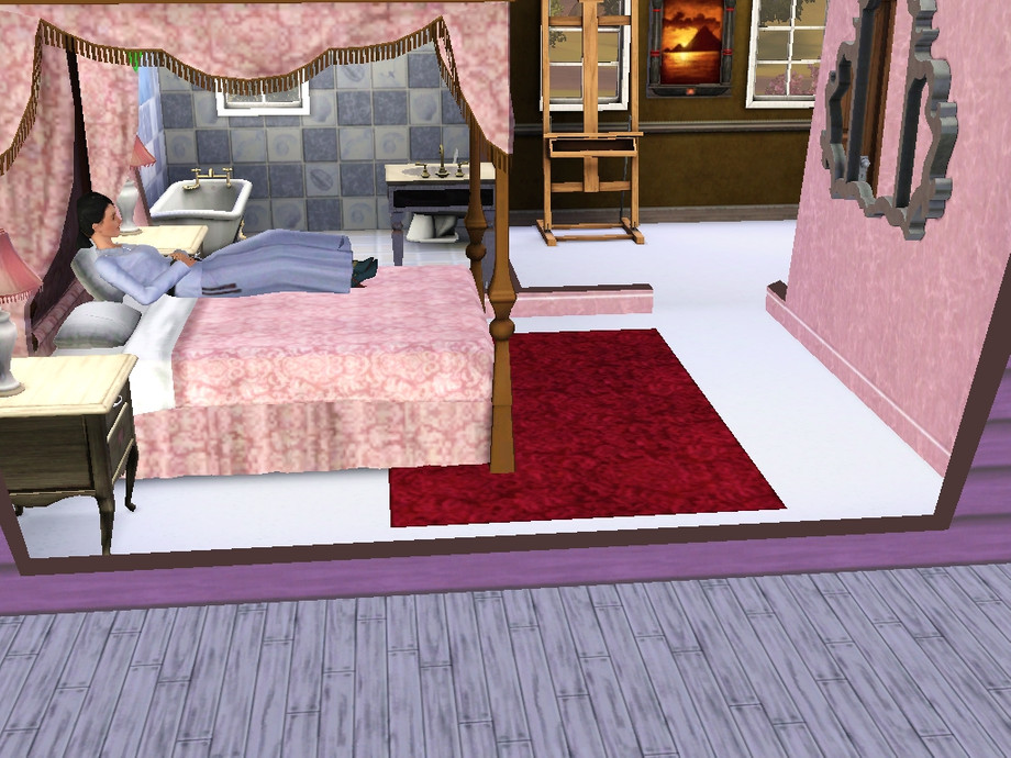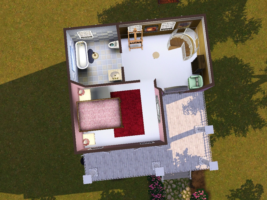 This house is a pretty little victorian home for a single sim or a couple. The predominant theme is 'pink' - pink flowers in the garden, pink bedroom, etc. It has one bedroom, one and a half bathrooms, open plan lounge/dinging room. There are two ready built floors, there is space for a third floor by simply adding a staircase to the second floor and then decorating the third floor as you choose. I designed this home on the 20x30 lot in Rachelle Ln, Appaloosa Plains.
