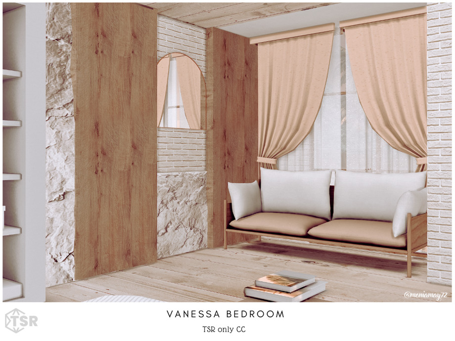 Sims 4 — Vanessa Bedroom by Moniamay72 — A beautiful modern rustic bedroom in white colors.
