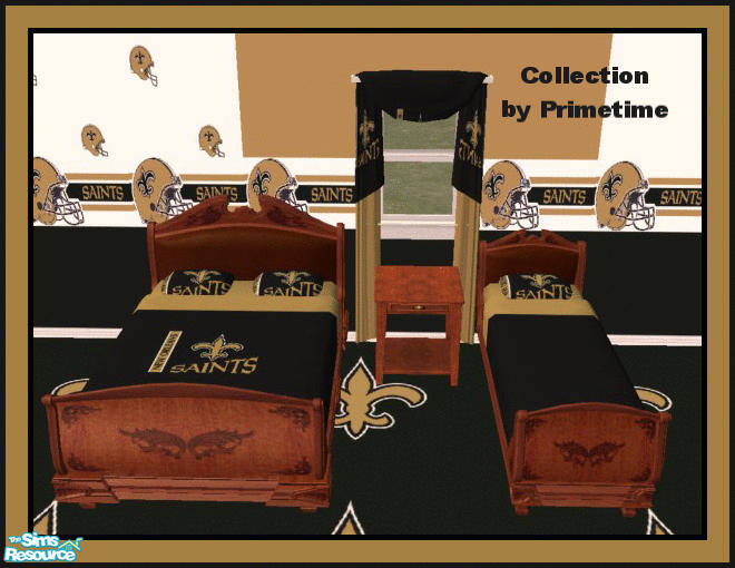 This collection is for all Saints fans. It is a complete bedroom set. It is shown with the BitzyBus curtain mesh which picks up all in game bedding. You can find that right here at TSR. All 32 teams coming soon.
