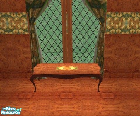 Lovely coffee table in cherry wood with yellow roses. Part of the Granny's Study Set and made for Texture Challenge #49 by Riverwillows.