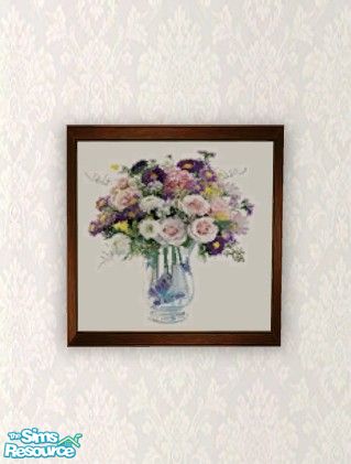 Lovely Victorian style bedroom set in soft lavender florals. Meshes by EarthGoddess. All items are base game. By Riverwillows.