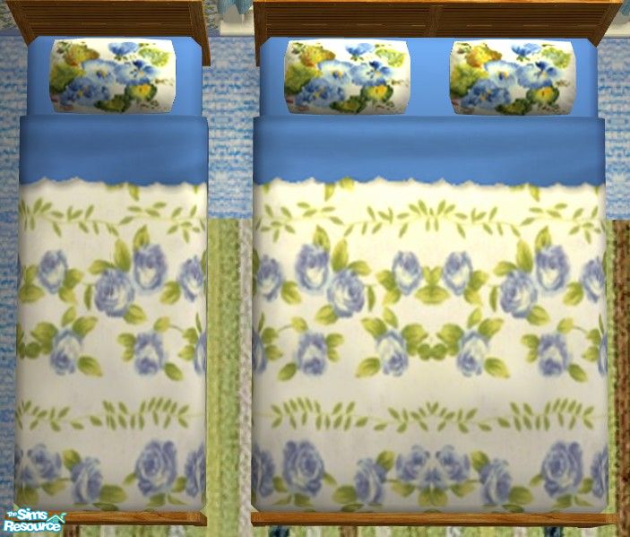 Lovely recolor of Caravan Sims Louisiana Bedroom, in blue and yellow spring flowers pattern, and made expressly at the request of Altanna here on TSR, by Riverwillows.