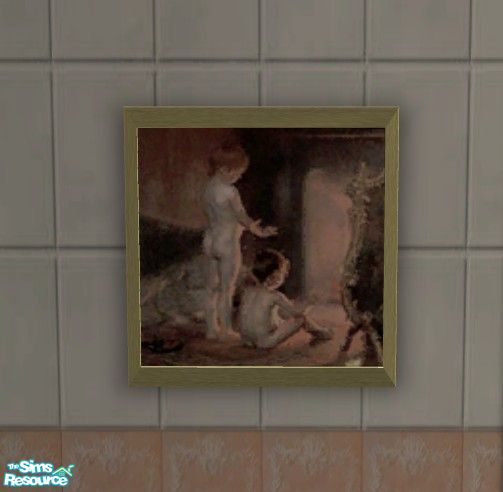 Gorgeous bath set in soft peach and luxurious cream colors. New meshes by EarthGoddess, HugeLunatic, and Rdgyanne. This is a famous 1890 oil painting called \"After The Bath\" by Paul Peel. See my other lovely recolors of this wonderful bath set at Natural Sims.