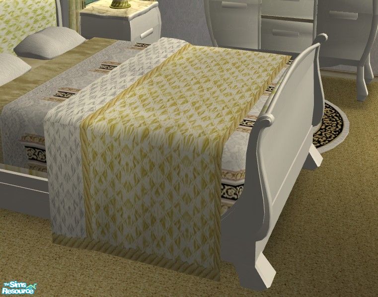 Lovely bedroom in white and gold. Using new room meshes by Rgdyanne, as well as KittyIsPretty and EarthGoddess too. All items are base game, except picture which requries Pets. By Riverwillows.