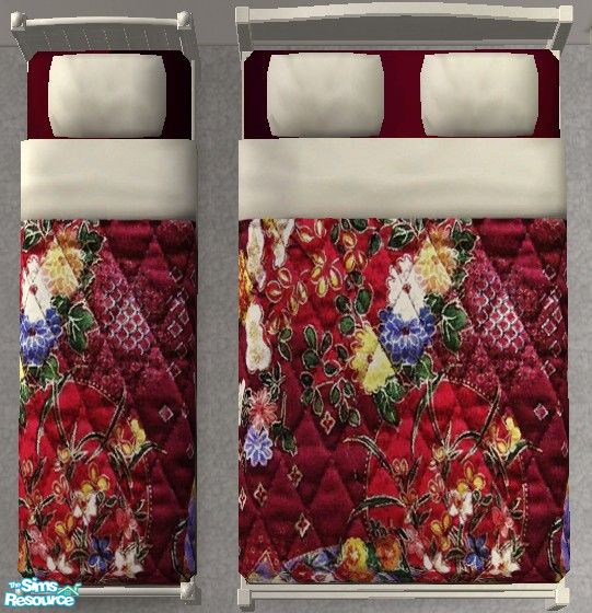 Lovely bedroom set in deep reds, and oriental silk quilting. Base Game. By Riverwillows