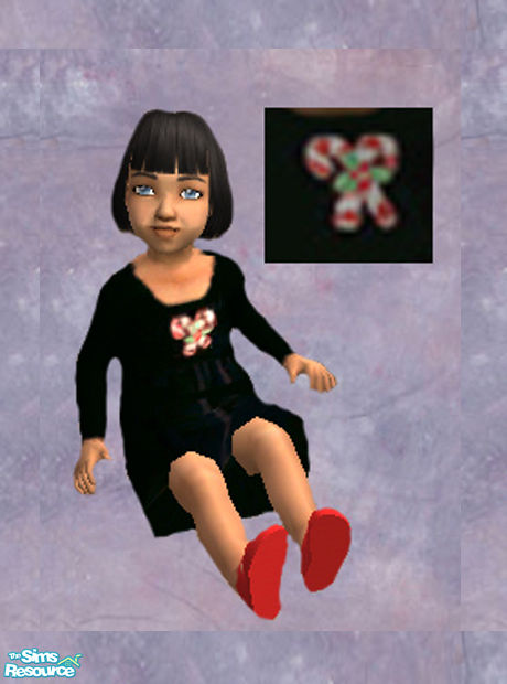 A cute black stretch velvet dress with candy canes embroidered on the front. It looks way better in the game than in the pic because I had to enlarge the pic so much.