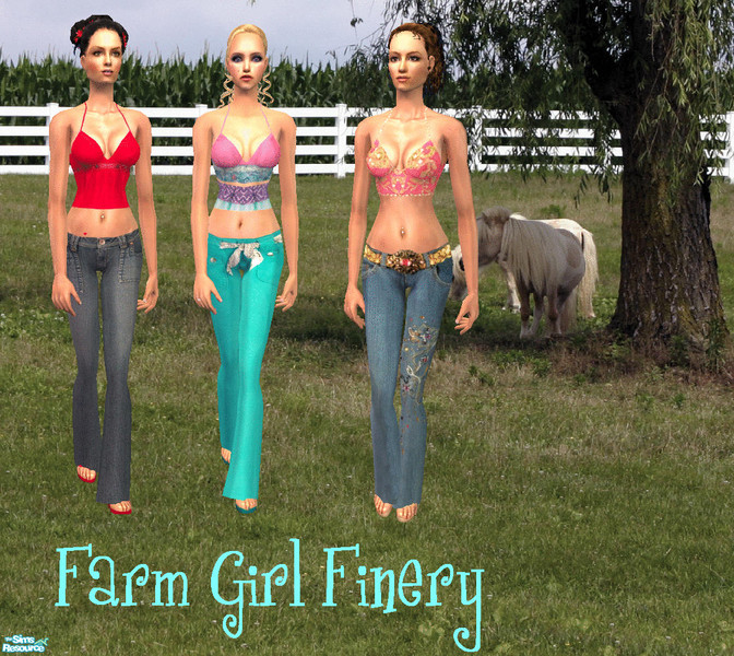 Three sexy outfits for your country sims. REQUIRES MESH BY GRIZZELDA.