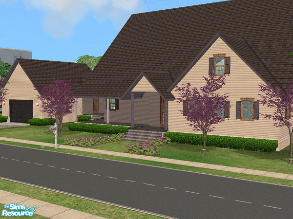 Mid size family home decorated in Plum, Gray and Black, Maxis Content and a few custom walls. Nice covered porches, including one leading from the garage. Just in case it rains before the next Seasons Expansionpack.