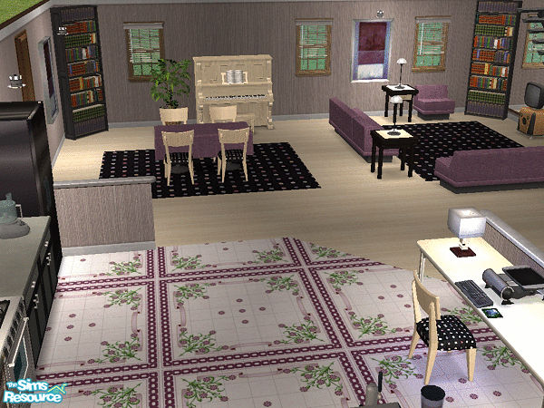 Sims 2 — Mapleleaf by SimanthaRat — Mid size family home decorated in Plum, Gray and Black, Maxis Content and a few
