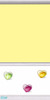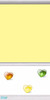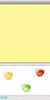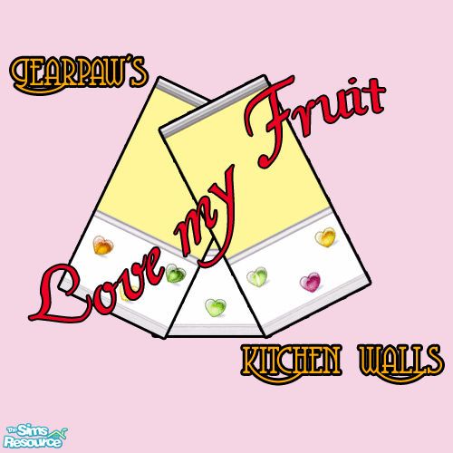 Kitchen walls with yellow upper half, and white bottom half with heart shaped fruit.
