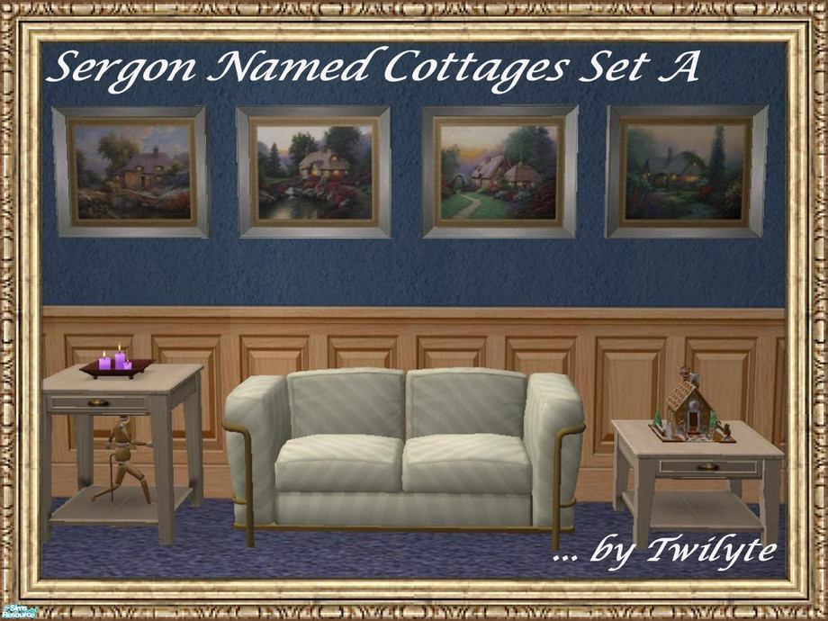 Sergon is a master painter whose cottages and landscapes are know world-wide. With a style similar to his teacher, Thomas Kinkade, Sergon's whimsical touch draws you into his fantasy world. No home should be without one of these masterpieces. Sims love them! A Maxis "Water & Spout" recolor. Set of 4.