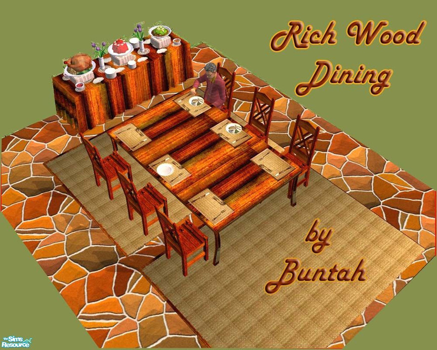 Sims 2 — Rich Wood Dining by buntah — This dining room is centered around my "Any Size Table" and you need the