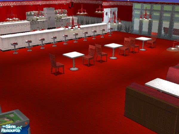 This is a little restaurant where all the kids in my hometown hung out at in the 1970\'s. It has 28 seating capacity that consists of 3 booths that seat 12, 3 tables that seat 6, and 10 stools at the counter. A jukebox, and 3 pinball machines for your Sims to entertain themselves.