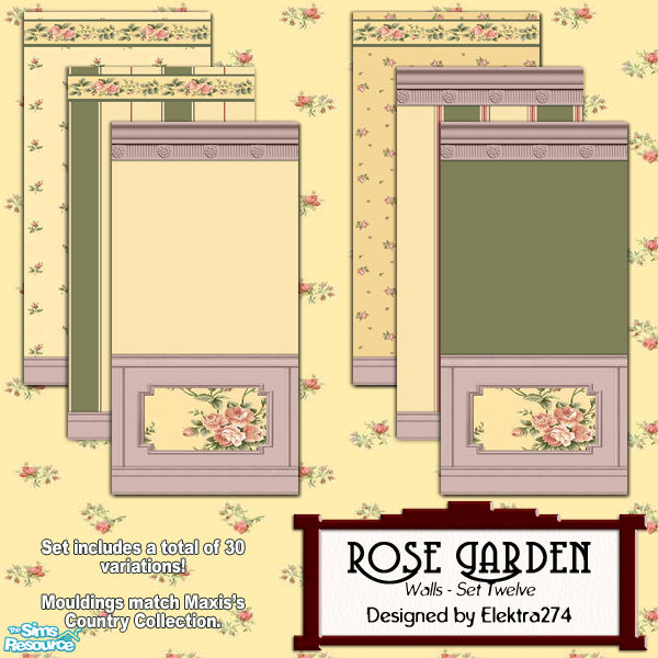 12 of 12 wall sets designed to coordinate with my \"Rose Garden\" floor collections. This collection also coordinates well with Maxis\'s Country Collection.
