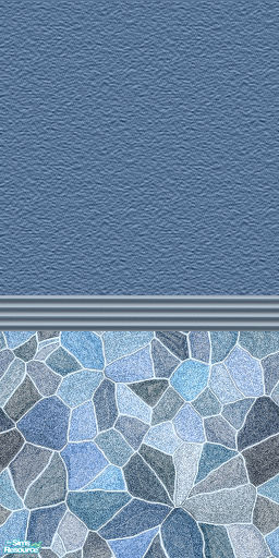 Gorgeous deep blue textured paint on top half with wooden panel in the centre and irregular stones in various shades of steel blue and grey on the bottom half. Not entirely seamless but a big wow factor in the game, especially in well lit rooms.