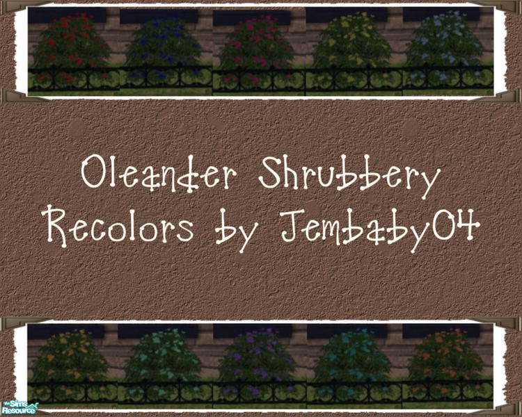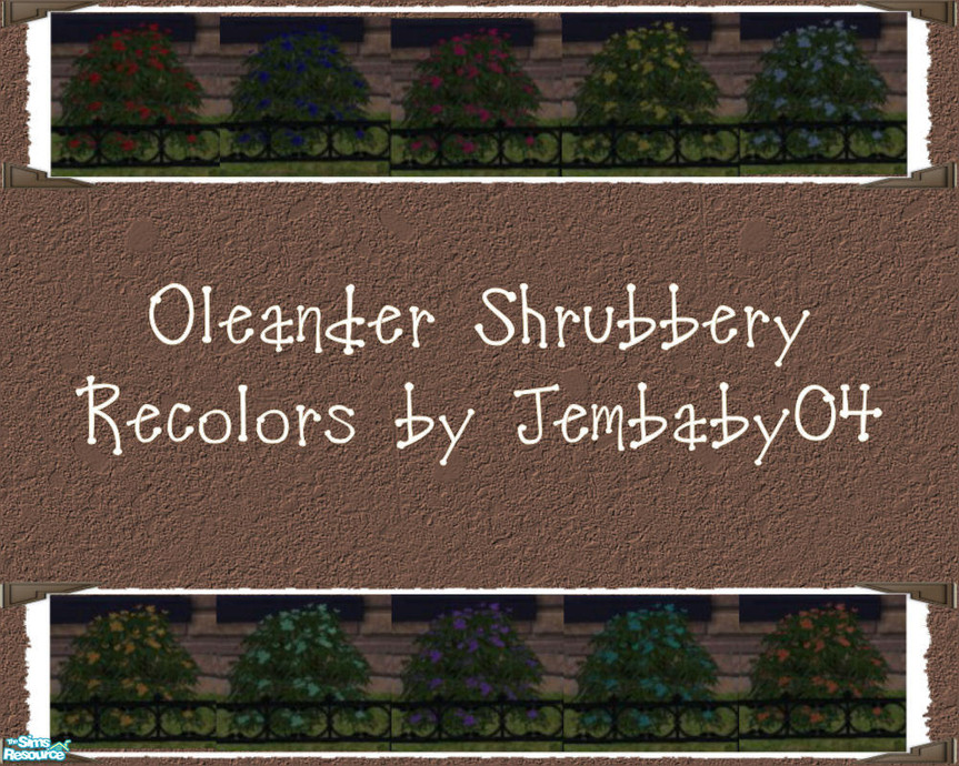 Redecorate your gardens with these 10 new Oleander shrub recolors. Designed to give you just the right colors for a bright and cheerful garden. TSRAA Items.