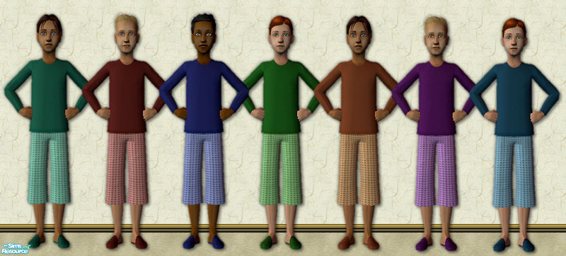 Comfy pajamas with matching slippers for the boys. I got bored with the usual pajamas, so I decided to try something with a different mesh.