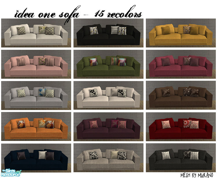 15 recolors of murano\'s \"Idea One\" sofa. Since the seats and cushions can be mixed and matched, there are endless possibilities!