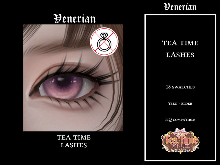 Sims 4 — Tea Time 3D Eyelashes by Venerian (Tea Time ) by Venerian — 18 swatches Two versions available: Incompatible