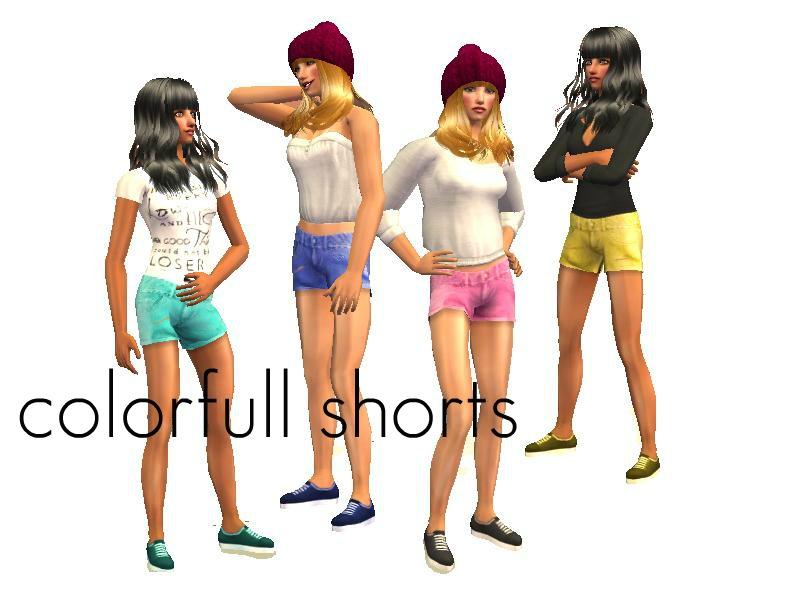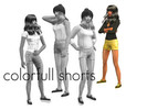 4 shorts in blue, pink and yellow