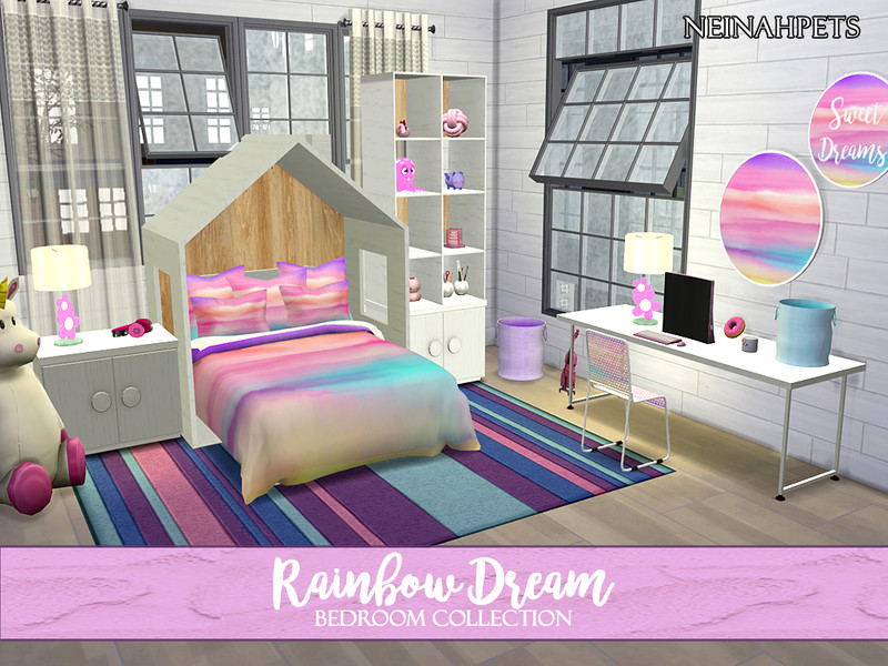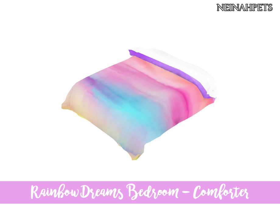 Sims 4 — Rainbow Dreams Bedroom Collection by neinahpets — A fun recolor and retextured suite with a watercolor gradient