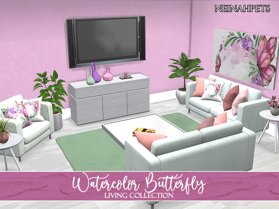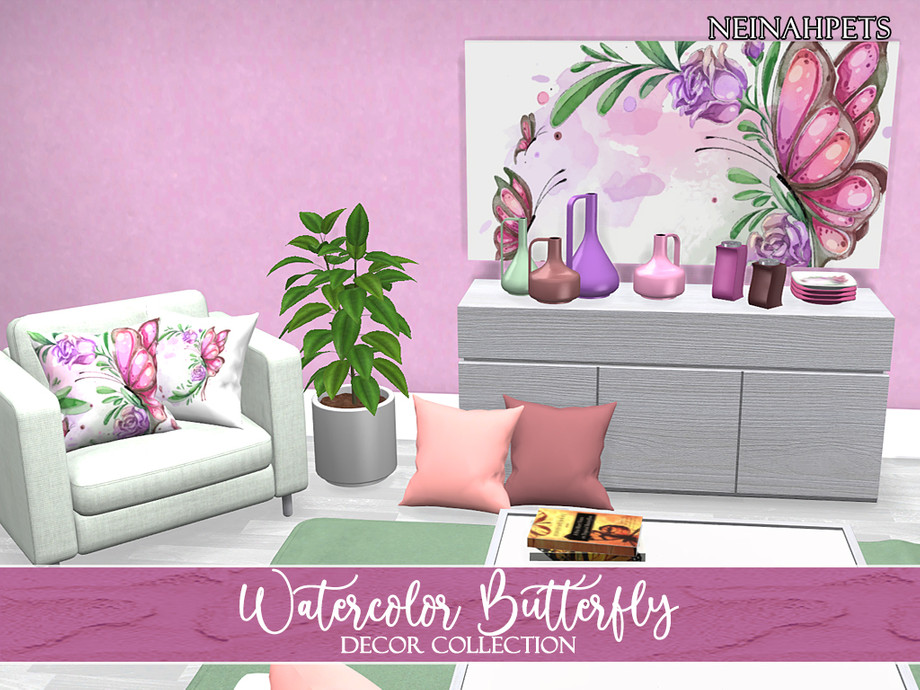 Meshes by NynaeveDesign required for all Watercolor Butterfly recolored/retextured items or you will get "missing footprint". Links can be found in Creator Notes on each item/set.