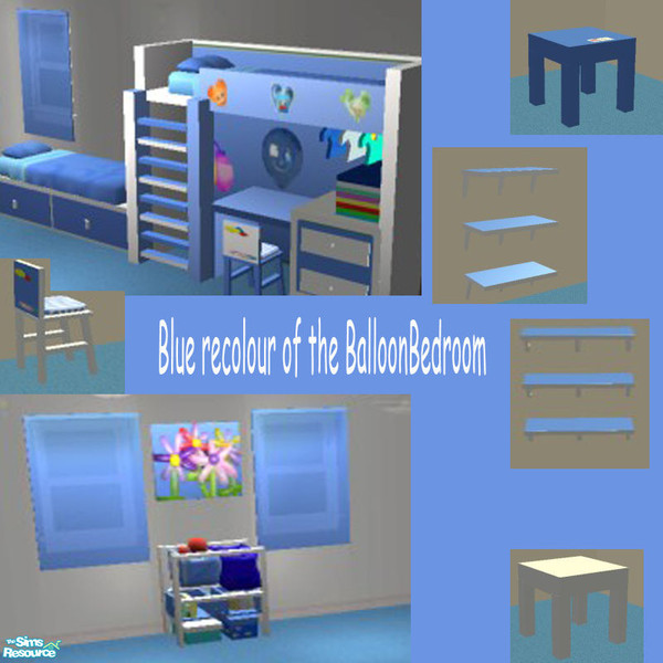 Recolour of the balloon bedroom in white and blue.