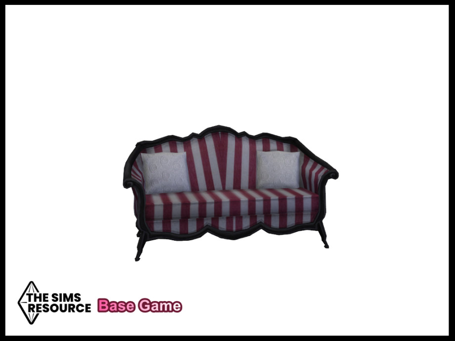 Maxis match shabby chic loveseat reupholstered in a raspberry and cream stripe fabric and soft white cotton cushions