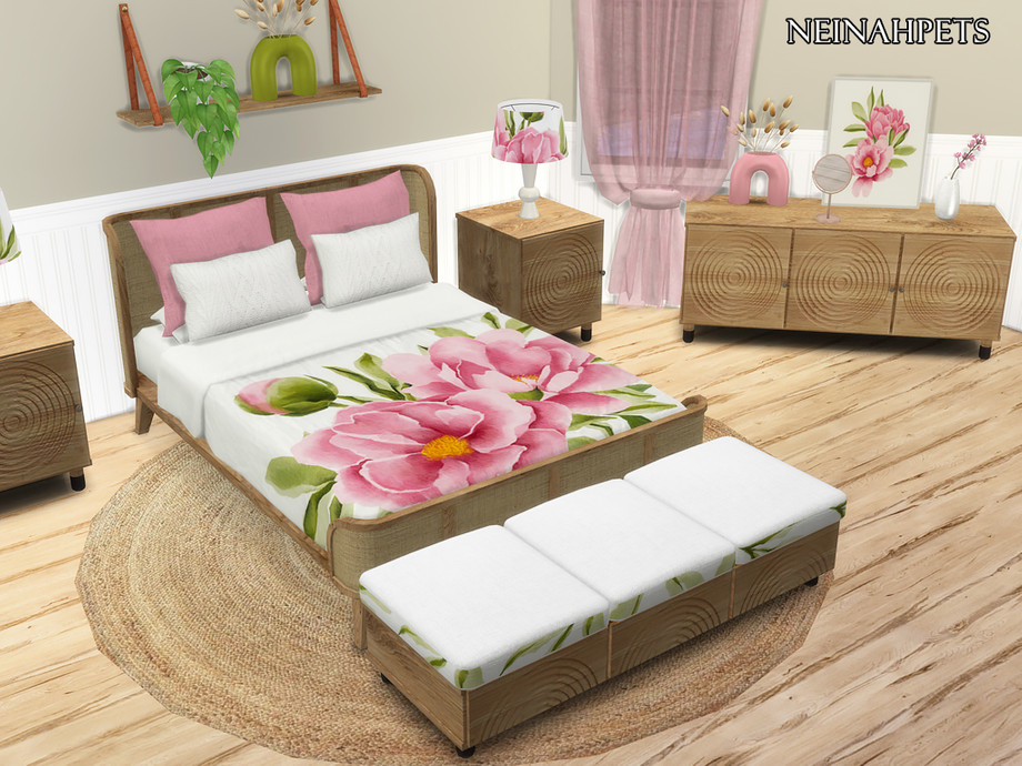 A beautiful bedroom suite recolor featuring hand painted watercolor peonies.