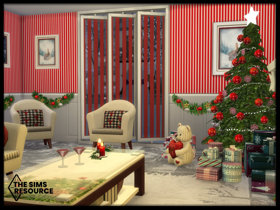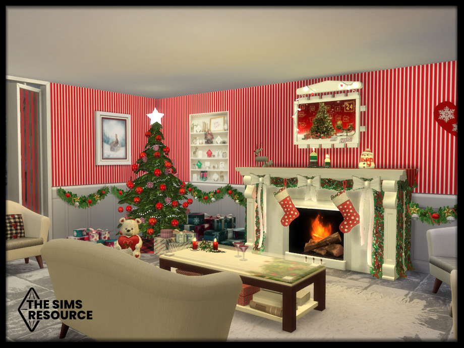 Maxis match Christmas living set. Get set for the holidays with this cozy living room and cwtch (snuggle) up to a roaring fire by candlelight.