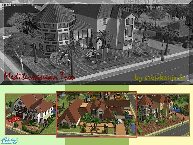 This set contains 3 gorgeous Mediterranean-styled homes. The small lot is Sicily, the medium lot is Crete, and the large lot is Corsica. Enjoy!