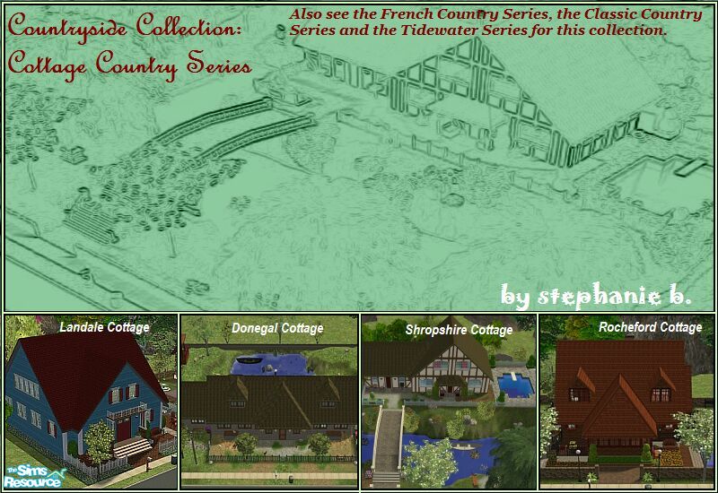 The Cottage Country Series is the final series in the Countryside Collection. This download includes 4 fully decorated cottage homes: Landale Cottage, Donegal Cottage, Shropshire Cottage and Rocheford Cottage. Enjoy!