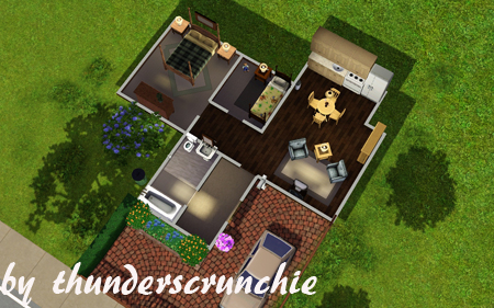 Hey guys I'm back with another cheap as chips starter for your suburban simmies. This home features a double and single bedroom, bathroom, entrance hall (which could house a PC work station) and an open plan kitchen/ living room.The inside has been fully decorated as well as budget will allow. Outside you'll find a modestly landscaped front garden and carpark. This particular house has been built on a larger lot. (for expansion or if, like me, you've used up all your small lots...even on your test towns....) Enjoy =)